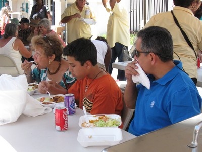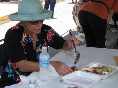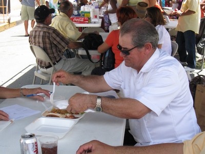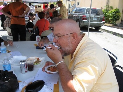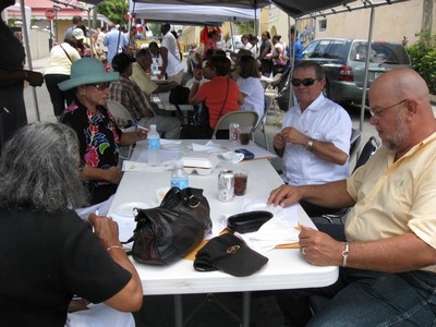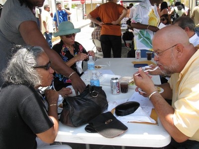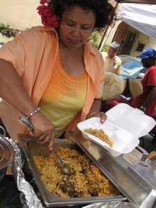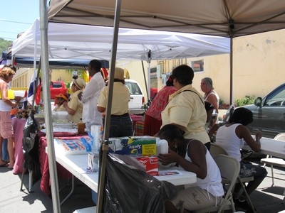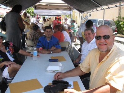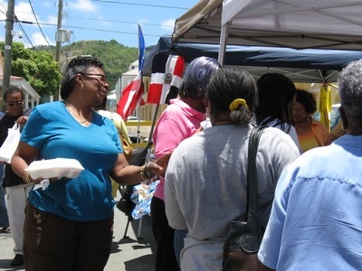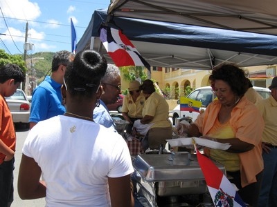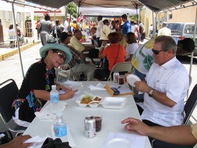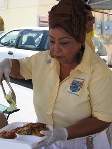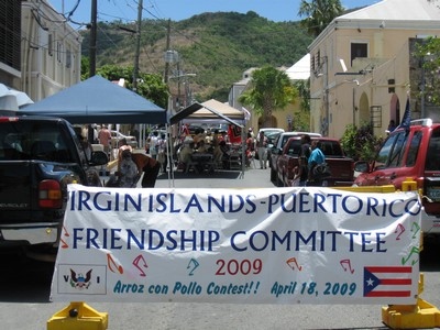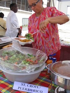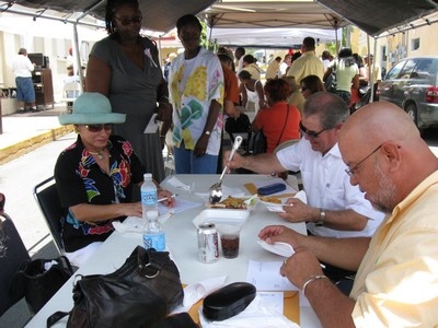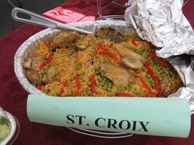 This year saw the First Annual Arroz con Pollo contest sponsored by the Virgin Islands - Puerto Rico Friendship Committee in advance of the VI-PR Friendship Week celebrations.The event also served to promote the Christiansted Public Library's Spanish wing. Entrants to the contest were representing a number of Latin regions of the Americas. |