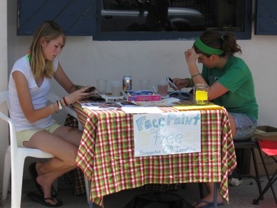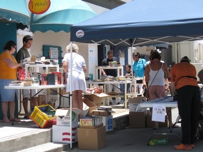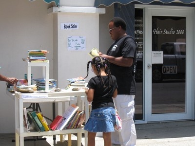 As we entered the block party contest, the Florence Williams Public Library's booth was doing a brisk business in books. |