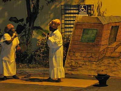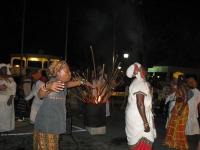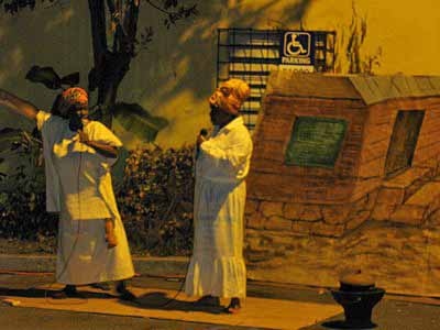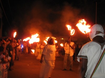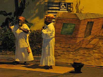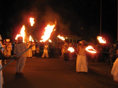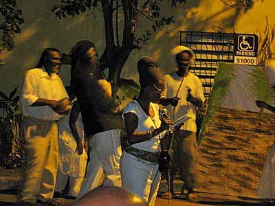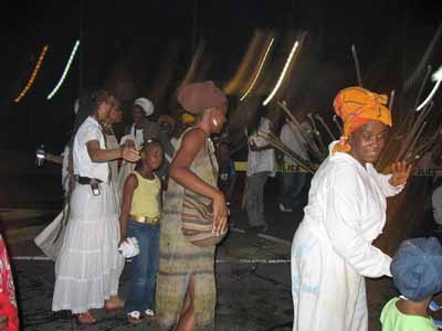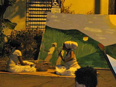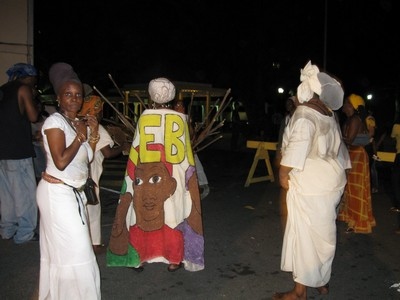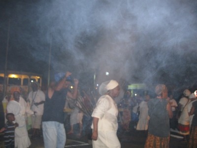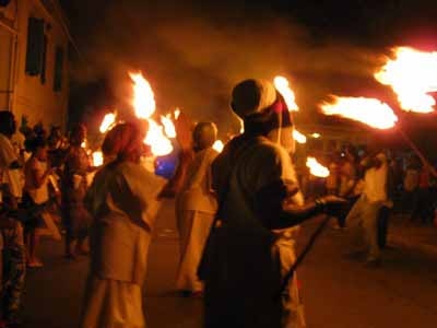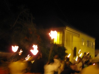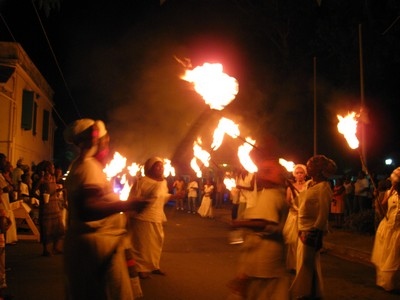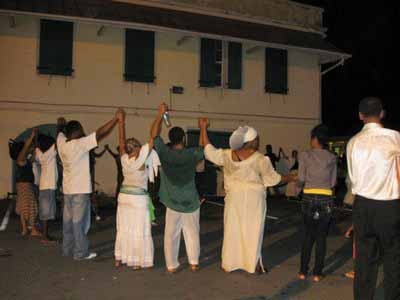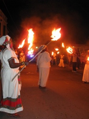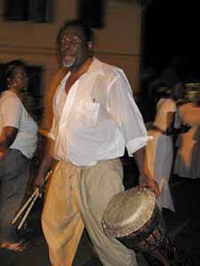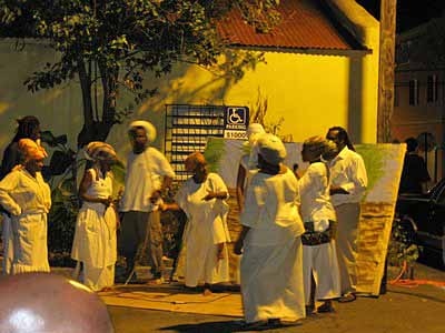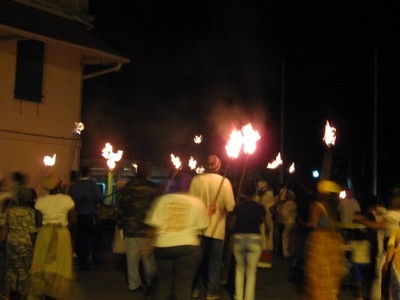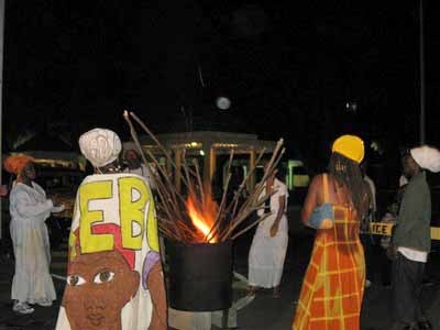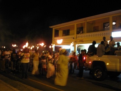 The Fireburn of 1878 was the culmination of many factors. This year, more of those reasons came out in the re-enactment. First, there were the very low wages tantamount to serfdom, where the pay equals what is owed to the property owner for food, clothing, shelter and medical care, so no actual money is received by the worker. Then there were the contracted ex-slaves from other islands and East Indians who were brought in to cut cane but were never given their papers to go back home and so had to stay stranded on St. Croix with no prospects of ever seeing their families again. This along with various illegal murders and poor living conditions boiled up into the conflagration we know as the Fireburn. |