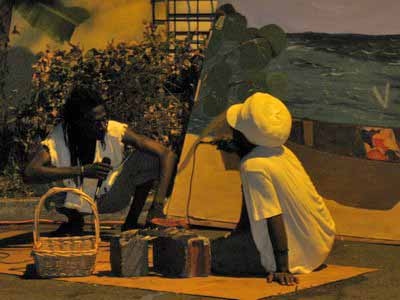 Our next scene is two men down by the bayside discussing life on the plantations and not being able to go back to their own islands. |