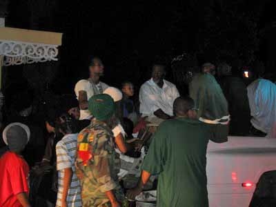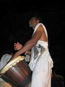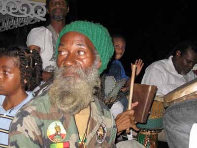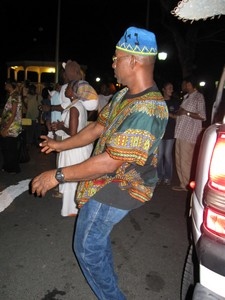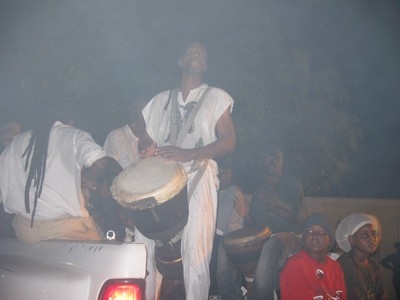 African drums lead the way. Drummers ride together in the back of the lead vehicle. |