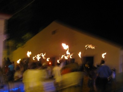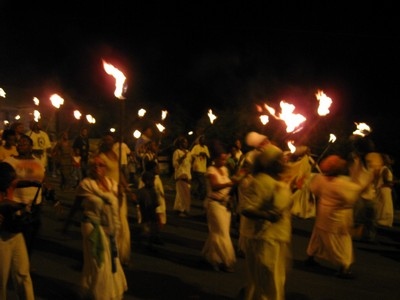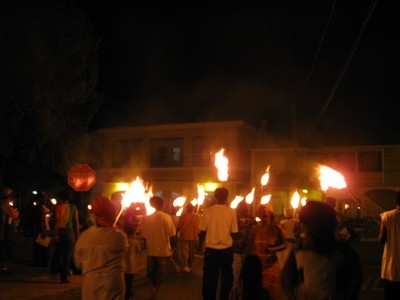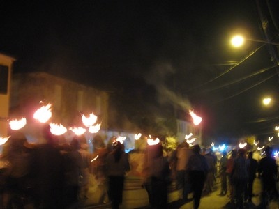Outside the torches are made ready and the crowd is assembling. |